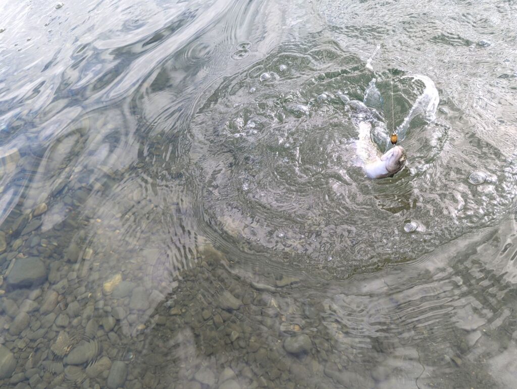 やっぱりミノーだとニジマスもいいサイズがかかってくれる。