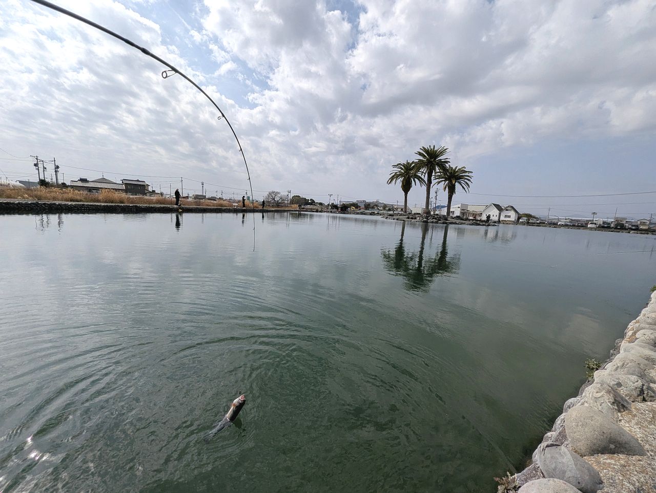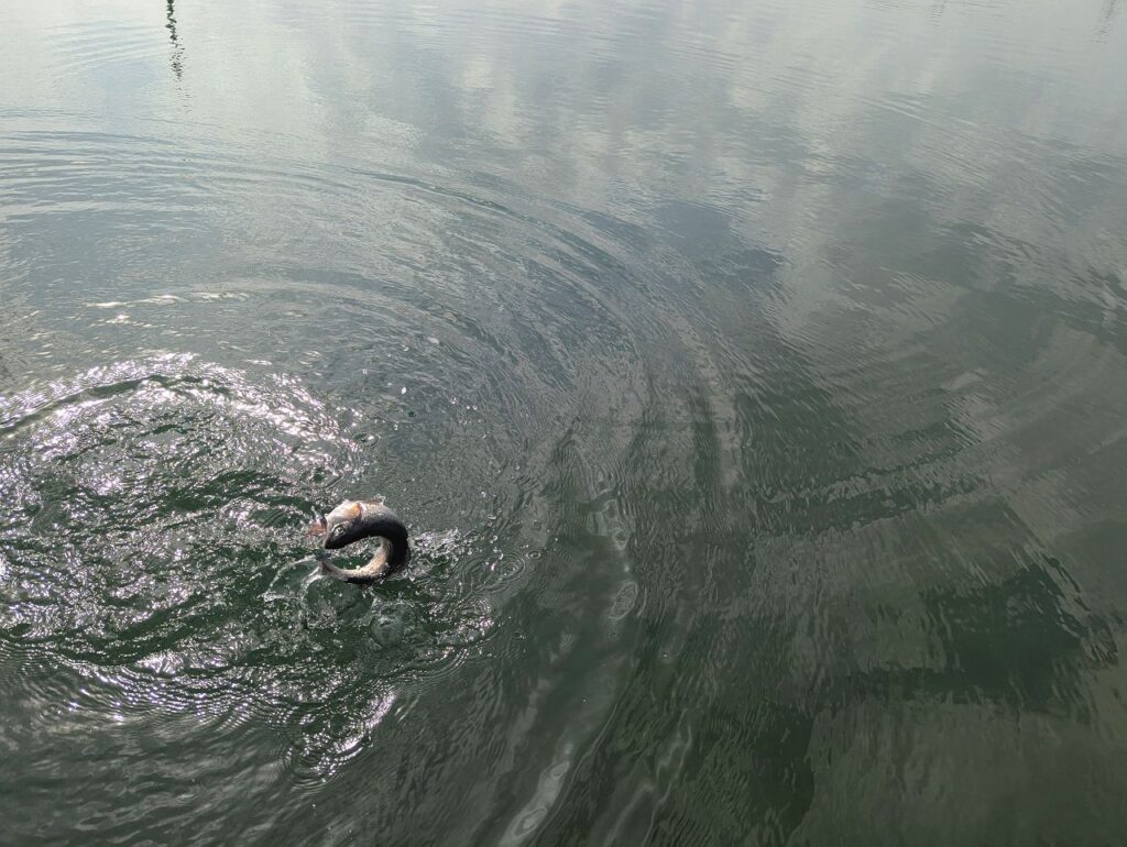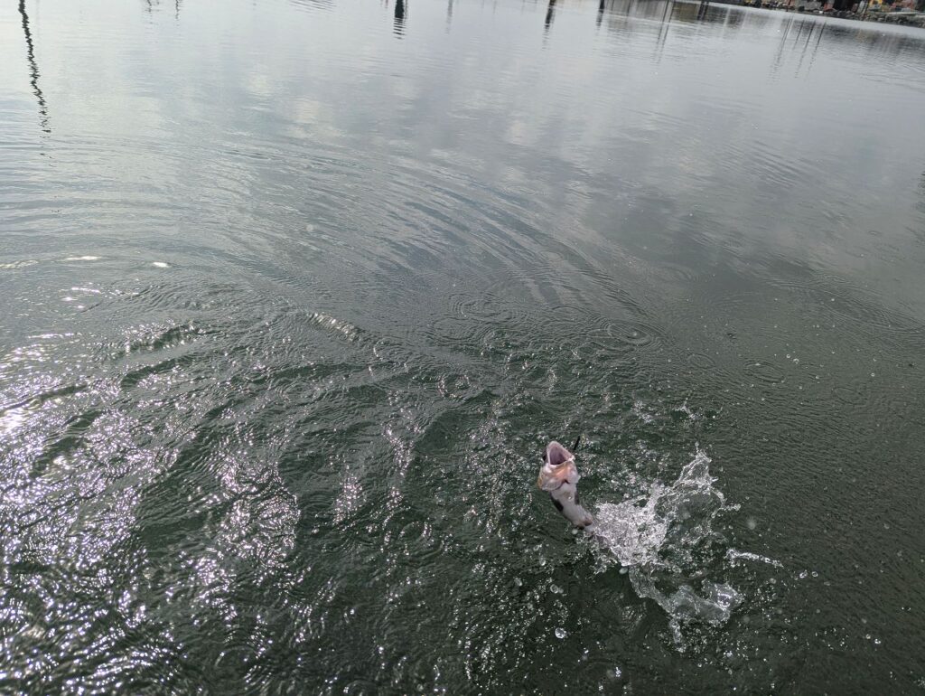 時計回りに水が流れているみたいで、桟橋の付近には魚が結構溜まっていました。
