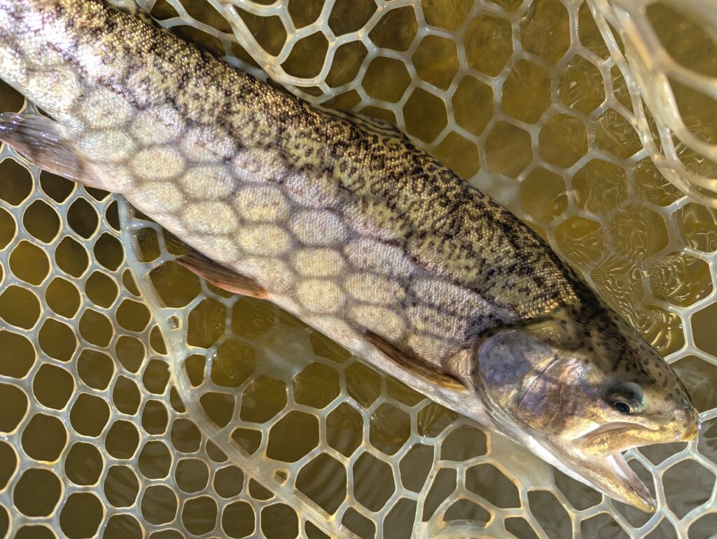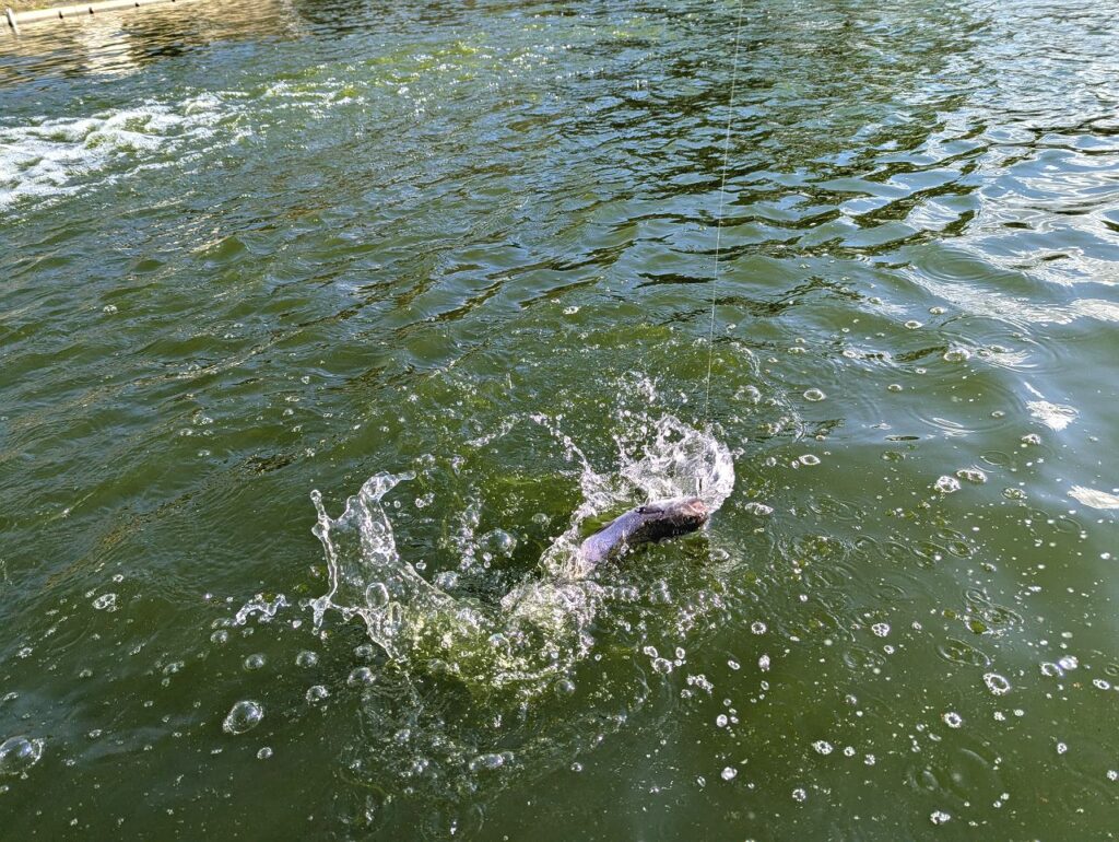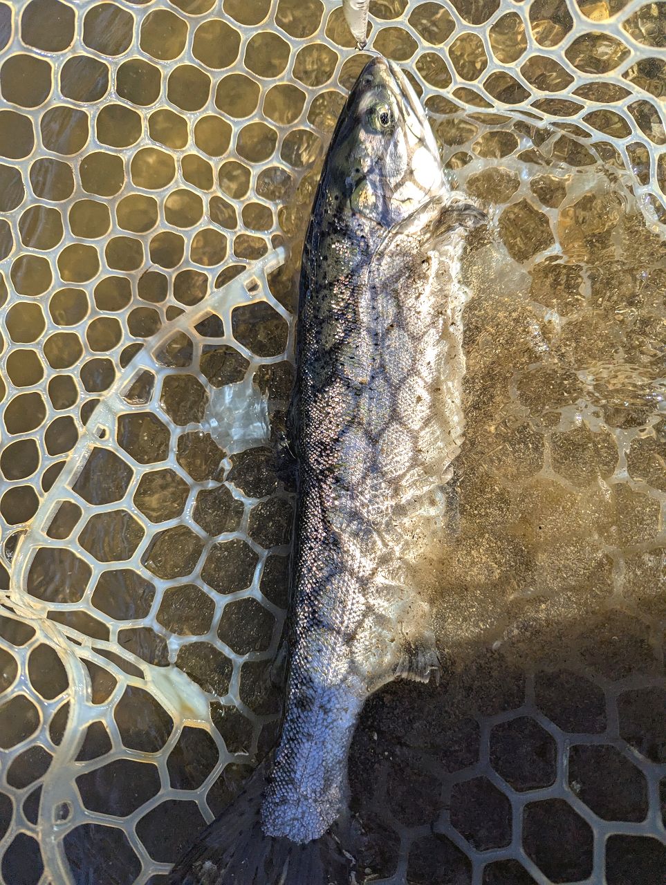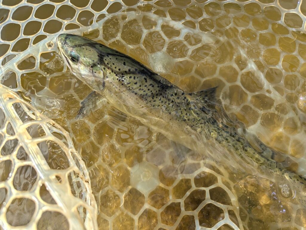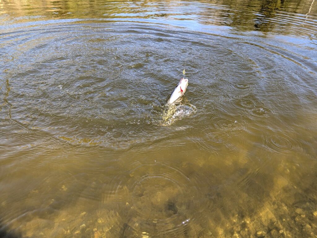日が出るにつれて少しずつ良くなっていきました。スプーンでニジマス。